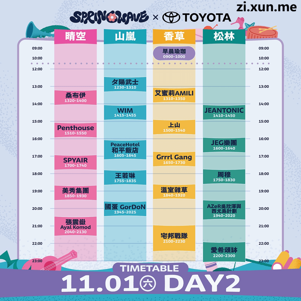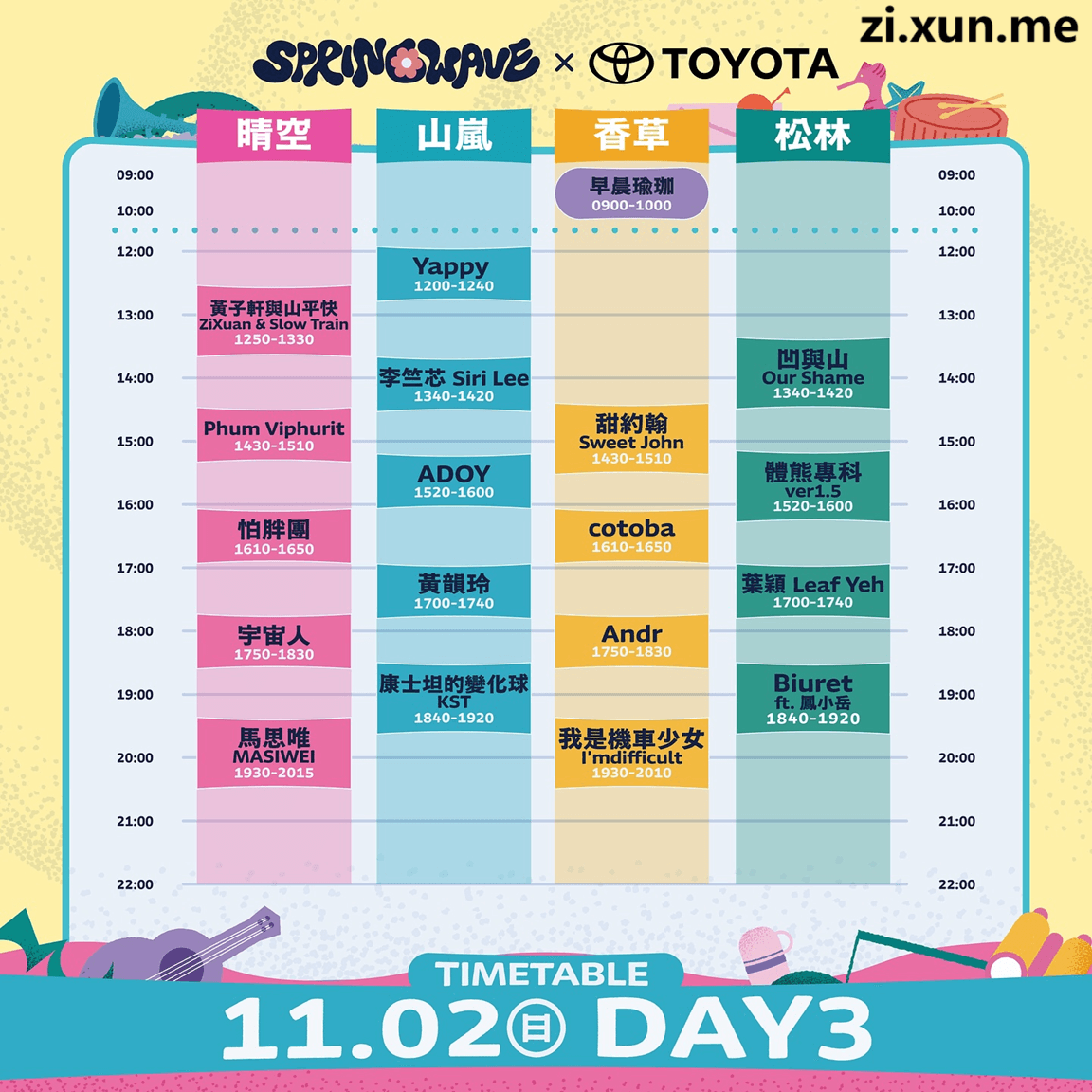 台湾2025台中春浪音乐节演出阵容及时间表 时间: 2025-08-29 分类: 文体娱乐 DAY1:DAY2:DAY3:演出时间:2025年10月31日、11月1日、2日演出地点:台湾 台中市 森渼原