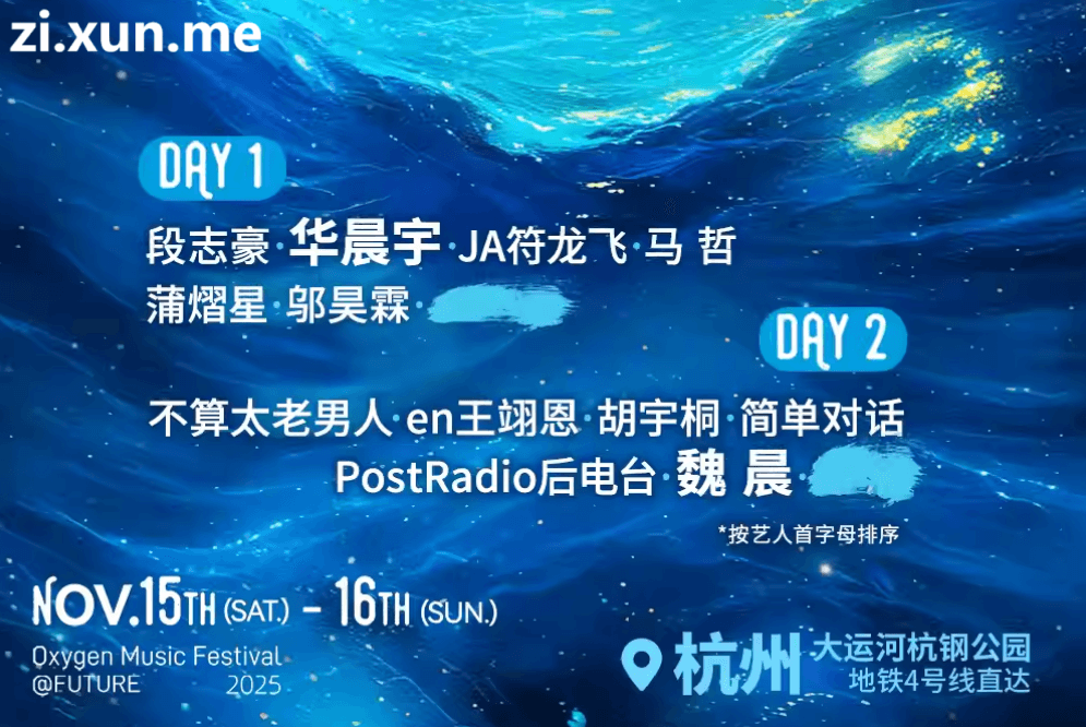 杭州2025氧气音乐节演出阵容及时间表 时间: 2025-10-24 分类: 文体娱乐 演出时间:2025年11月15日、16日演出地点:浙江省 杭州市 大运河杭钢公园具体演出时间细节持续更新ing,敬请留意。