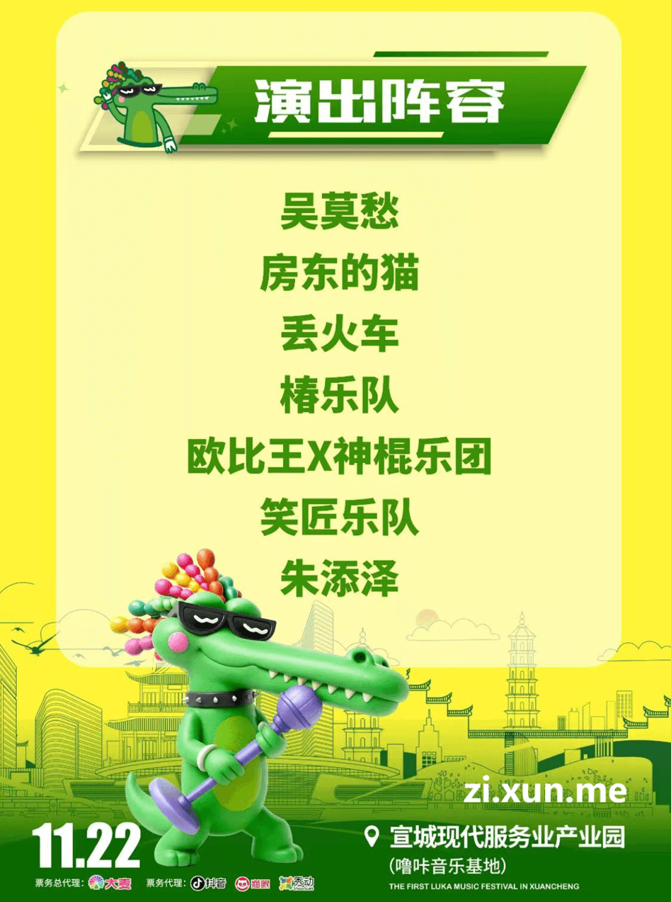 2025宣城噜咔音乐节演出阵容及时间表 时间: 2025-10-26 分类: 文体娱乐 演出时间:2025年11月22日演出地点:安徽省 宣城市 宣城现代服务产业园(噜咔音乐基地)具体演出时间细节持续更新ing,敬请留意。