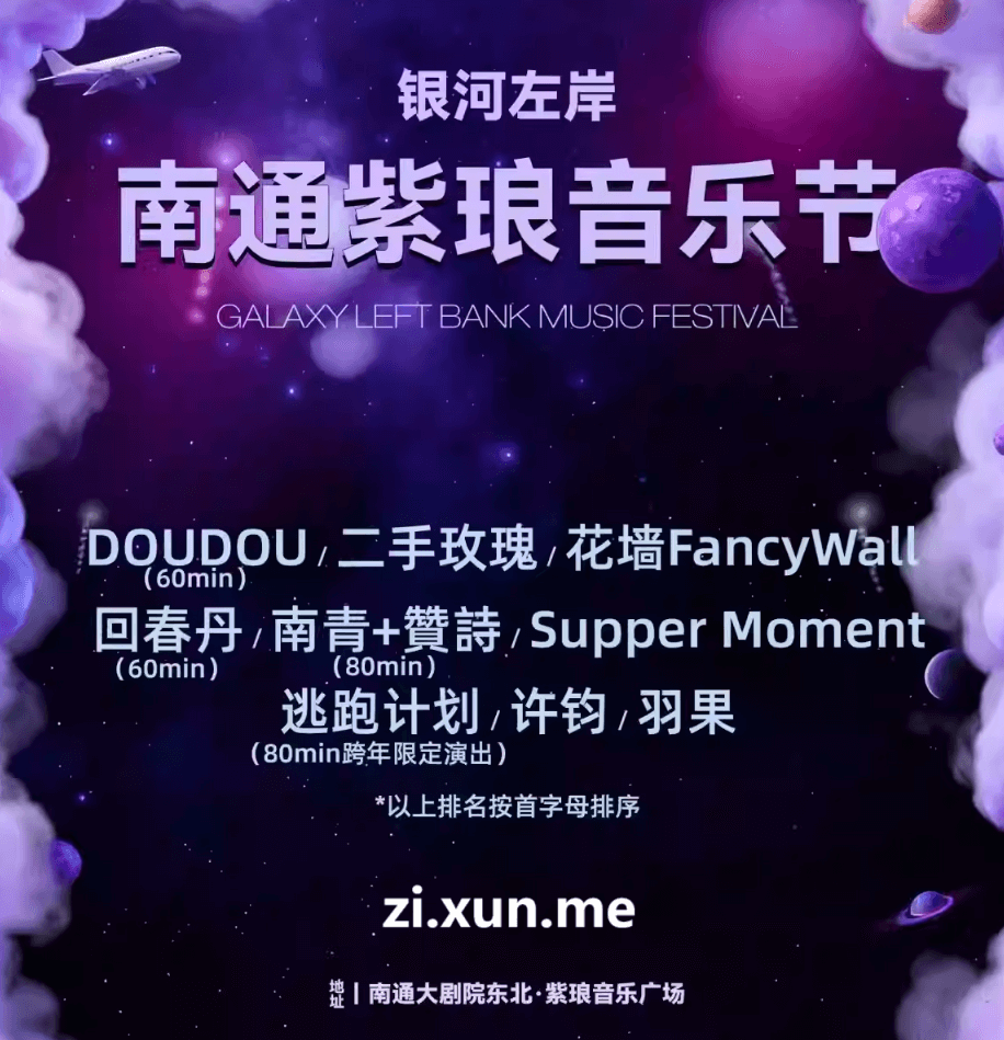 2025-2026南通紫琅·跨年银河左岸音乐节演出阵容及时间表 时间: 2025-12-08 分类: 文体娱乐 演出时间:2025年12月31日-2026年1月1日演出地点:江苏省 南通市 南通大剧院北绿地(户外草坪)具体演出时间细节持续更新ing,敬请留意。