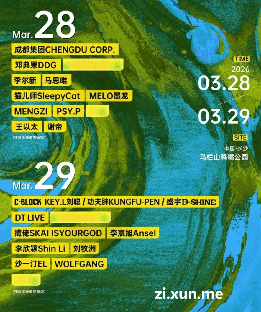 2026长沙马栏山音乐节演出阵容及时间表 时间: 2026-02-06 分类: 文体娱乐 演出时间:2026年3月28日、29日演出地点:湖南省 长沙市 马栏山鸭嘴公园具体演出时间细节持续更新ing,敬请留意。