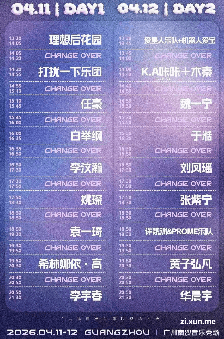 2026广州洋葱飞船音乐节演出阵容及时间表