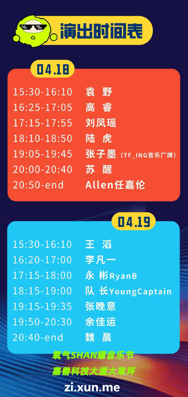 2026嘉兴氧气SHAN耀音乐节演出阵容及时间表