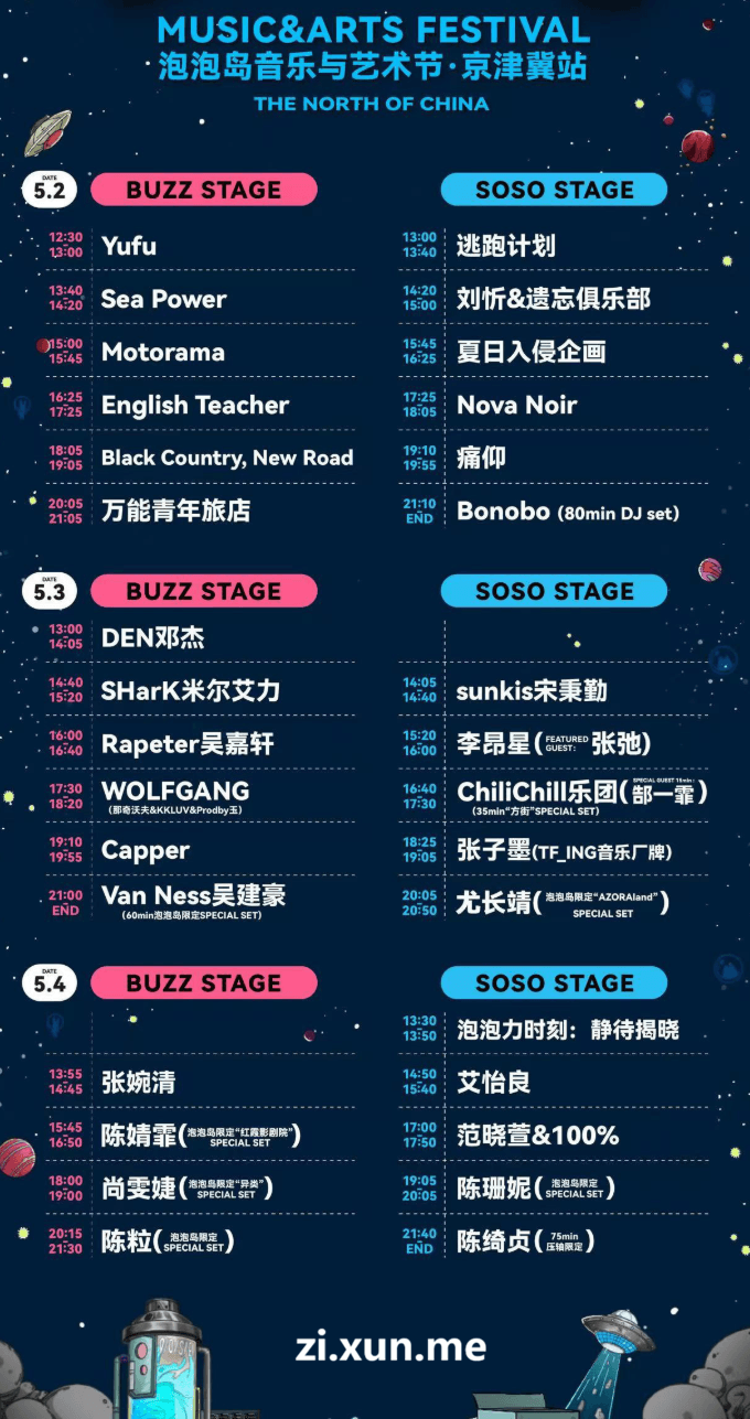 2026天津泡泡岛音乐节演出阵容及时间表